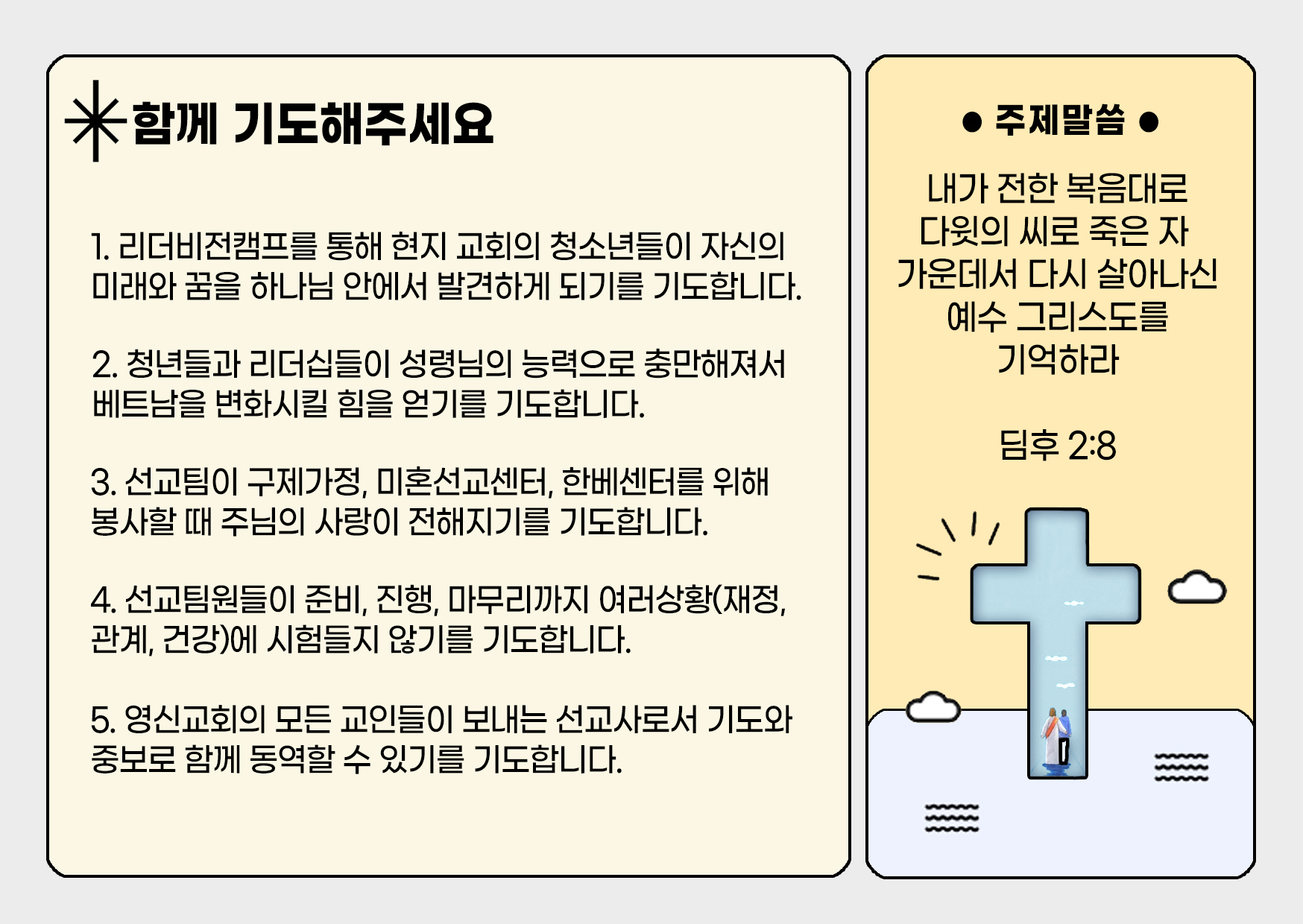 5. ¿µ½Å±³È¸ÀÇ ¸ðµç ±³ÀεéÀÌ º¸³»´Â ¼±±³»ç·Î¼ ±âµµ¿Í Áߺ¸·Î ÇÔ²² µ¿¿ªÇÒ ¼ö Àֱ⸦ ±âµµÇÕ´Ï´Ù.